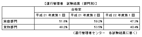 財団法人運行管理者センターは、8月22日に実施された平成22年度第1回運行管理者試験の結果を発表した。