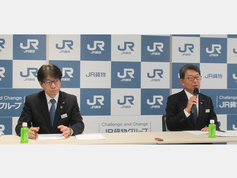 21日に会見した犬飼社長は、足元の荷動きについて「上半期はプラス基調で推移してきたが、11月、12月と前年を下回った。北海道発のタマネギ、馬鈴薯の不作や一部顧客の出荷停滞による食料工業品の減送などが主な要因だが、コロナ以降、化学関係の輸送量も戻っていない」と説明。麦谷泰秀執行役員営業部長は「特定品目に加え、製造業を中心に下期から在庫が増えているという声も聞く。景気が弱含みで動いている」と述べた。今後に向けては、「来年3月のダイヤ改正で、東京~大阪間、名古屋~福岡間などニーズが高い区間で輸送力を増強する。運輸収入を底上げすることで、社会に広く貨物鉄道輸送が必要だということを理解していただけるように努めていく」(犬飼氏)と語った。